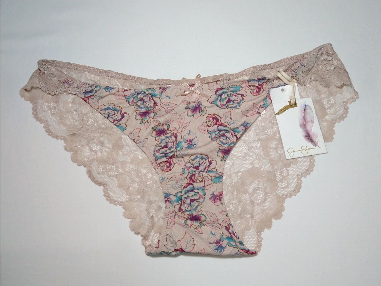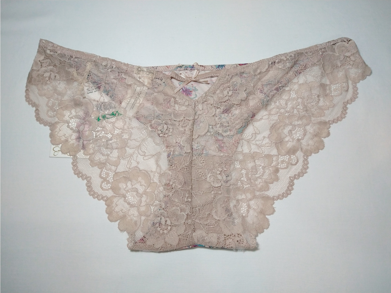 Encaje infinito. Esta tanga panty hipster coqueto confeccionado con detalles de encaje y lazo de adorno en la parte delantera y trasera.